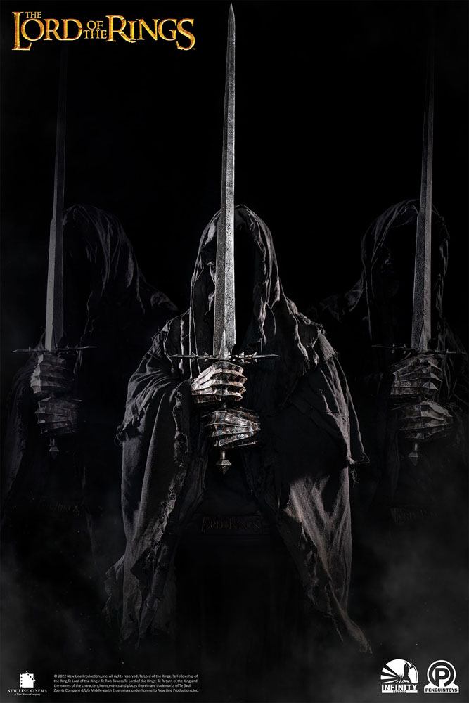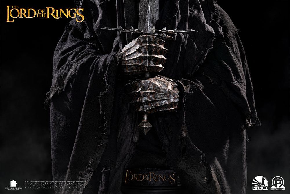 La nostra opera è una statua busto a grandezza naturale in scala 1/1 dello Spettro dell'Anello, che indossa il mantello scuro e tiene in mano la Lama Morgul. Avendo utilizzato tessuti veri e Polystone, la statua ricrea accuratamente un'immagine potente ma terrificante dello spirito dell'anello.