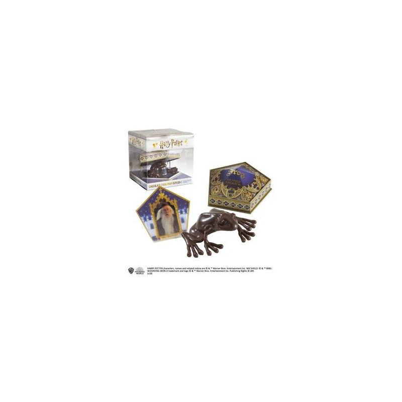 Bellissima Replica della Cioccorana. Completa di scatola, rana in gomma (non edibile) e la figurina di Silente dalla collezione di carte Strege e Maghi famosi. Cm 10 x 12 x 12