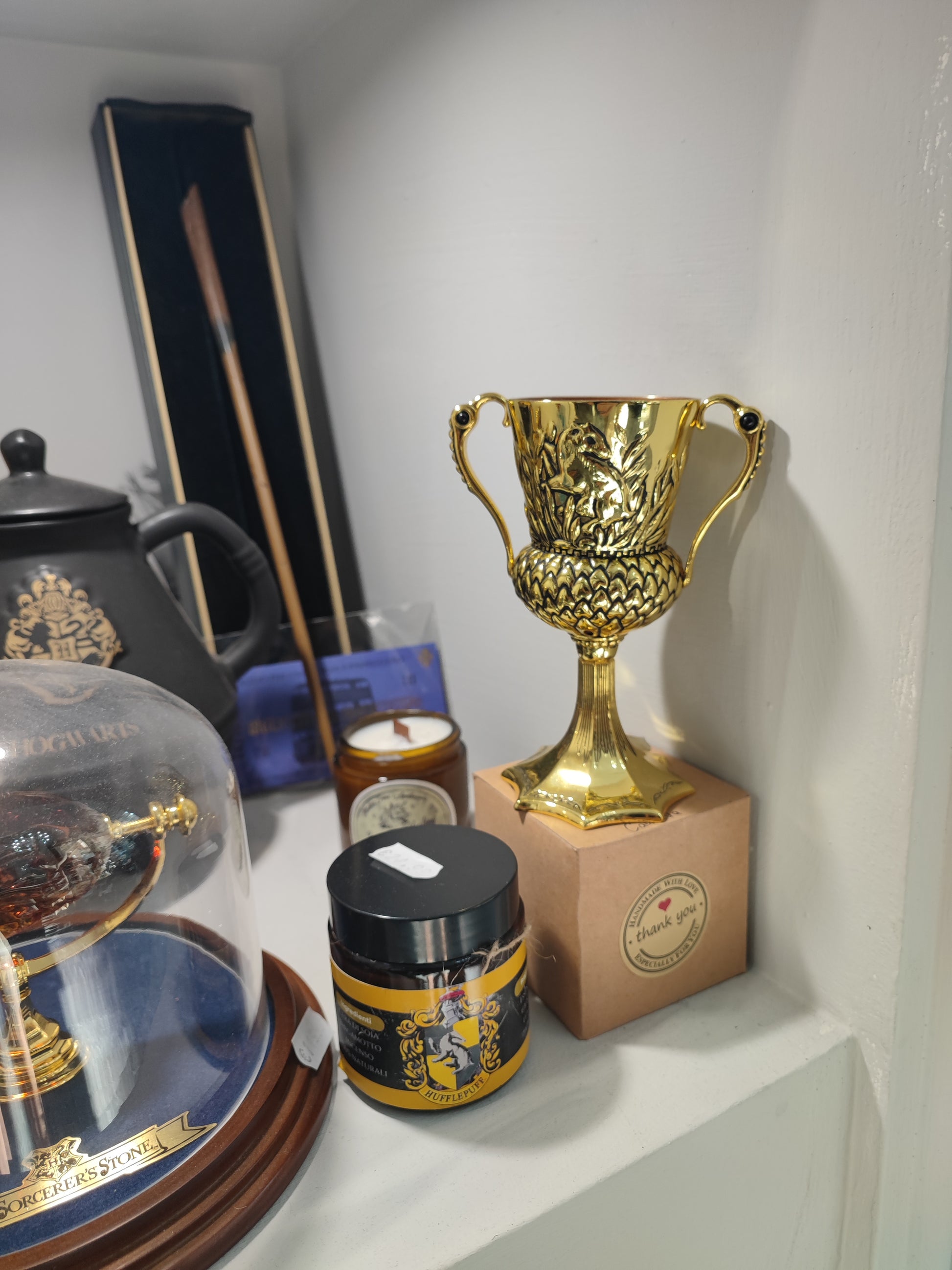 Questa è una replica autentica della Coppa di Tassorosso/tassofrasso, come si vede nella saga di "Harry Potter". Misura 13 cm di altezza. Un pezzo da collezione davvero fantastico 😍