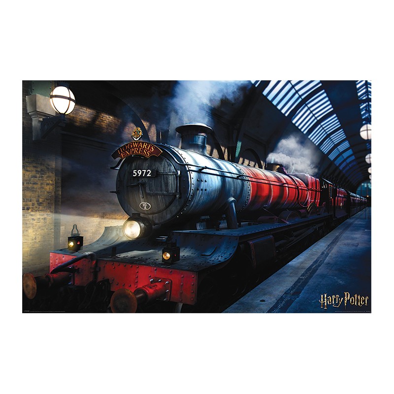 Fantastico Maxi poster della saga di Harry Potter raffigurante la stazione Binario 9 & 3/4 con il treno che porta alla scuola di magia e stregoneria di Hogwarts.