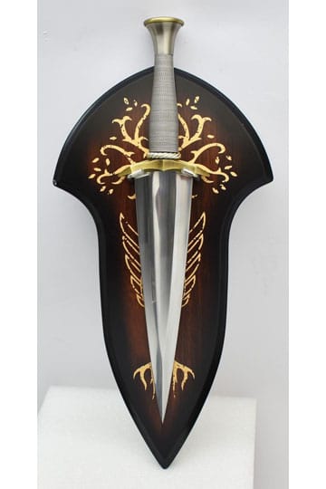 Immergiti nell'epico mondo della Terra di Mezzo con questa replica finemente realizzata del pugnale brandito da Boromir nella trilogia "Il Signore degli Anelli". Questo pugnale non è solo un omaggio al leggendario guerriero ma anche un impressionante oggetto da collezione per i fan della saga fantasy.