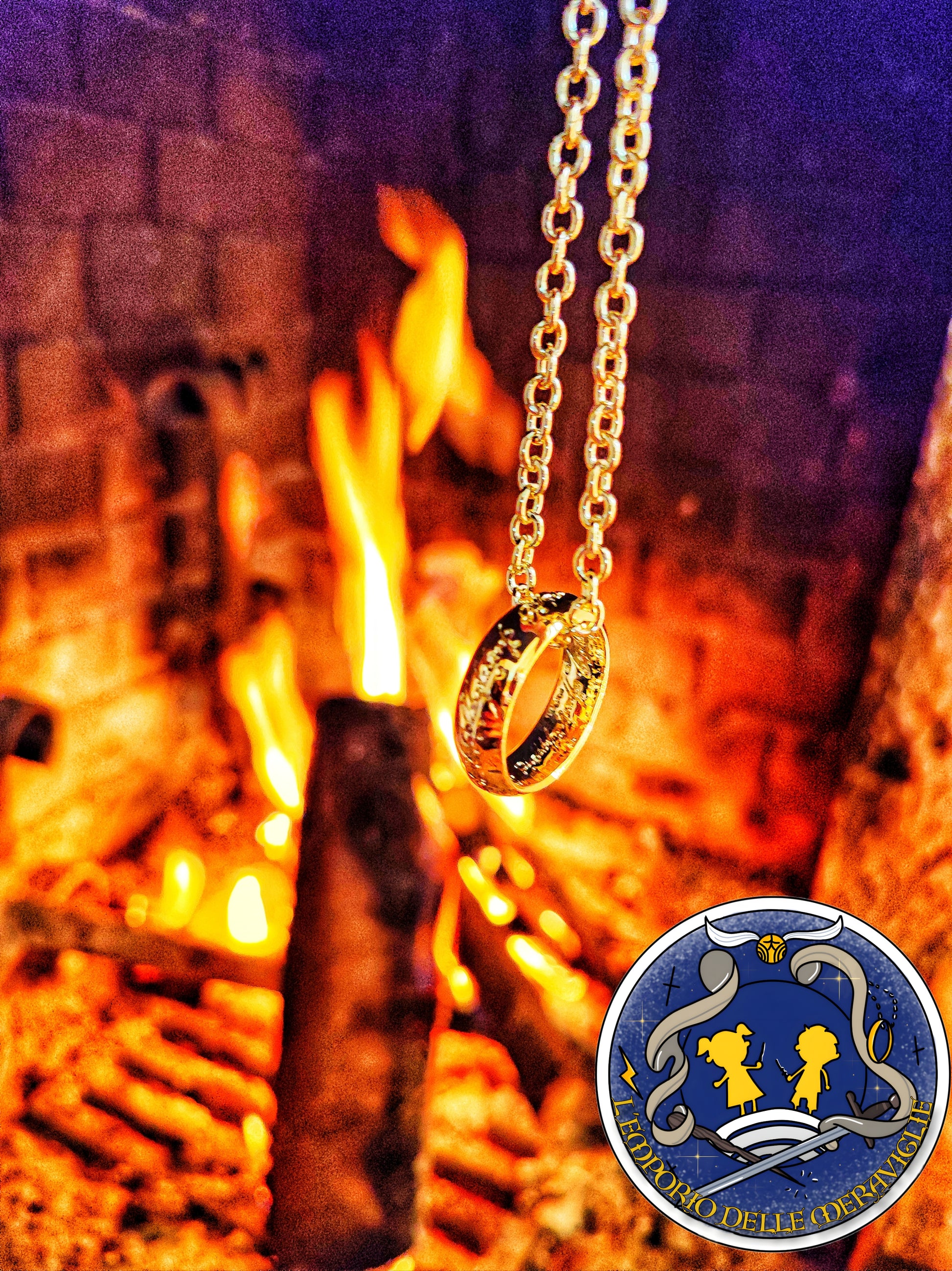 L'Anello del Potere tratto dalla saga Il Signore degli Anelli (The Lord of the Rings) è realizzato in metallo placcato oro. La misura dell'anello è standard (il diametro interno misura circa 20 mm), la catenina è in color oro e misura circa 60 cm.